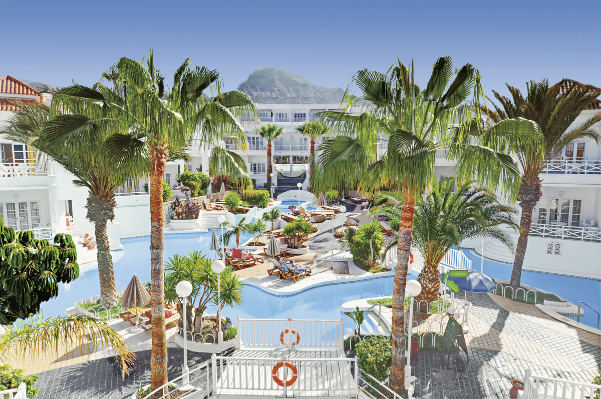 Appartementen Los Lagos De Fanabe ligt direct aan het strand en in/bij een winkelcentrum